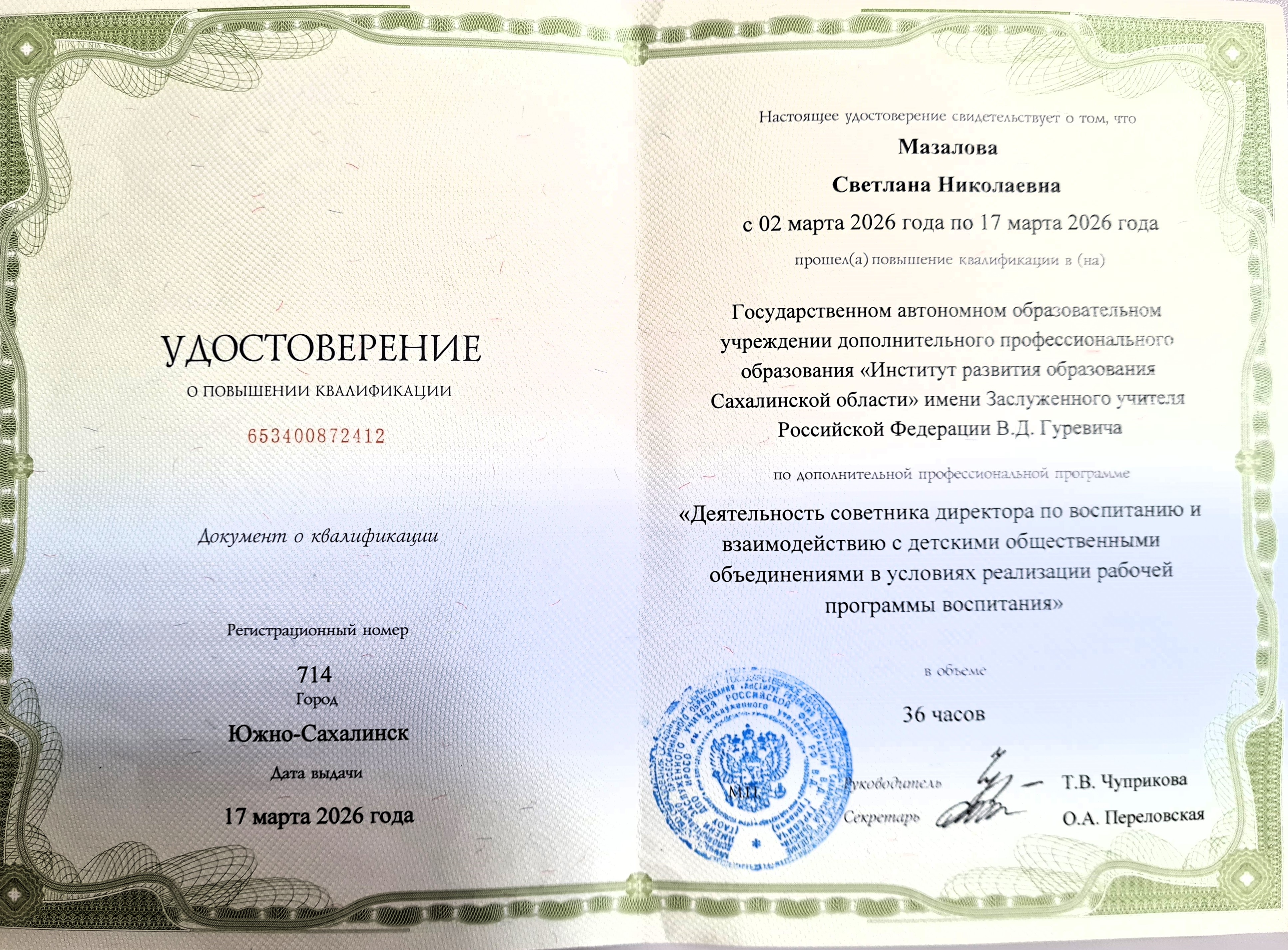 (ФГБУ "Российский детско-юношеский центр". 140часов. Форма обучения: заочная. Направленность: иное).